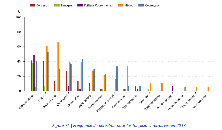 L’étude examine en détail les concentrations des différents types de molécules. Nous nous concentrons sur les fongicides très utilisés dans la région.