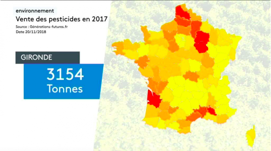 Malheureusement, l’enquête réalisée par l’agence ATMO-Nouvelle Aquitaine pourrait tempérer notre enthousiasme. Avec difficulté, la nouvelle agence « grande région » a reproduit en Nouvelle Aquitaine ce qui se faisait en Poitou-Charentes : installer des capteurs permanents pour mesurer les taux de pesticides dans l’air de différents sites, dont deux en Gironde ce qui semble justifié au regard du record des ventes de substances actives : 2800 tonnes en 2016 (et 3154 en 2017), ce qui est 10 fois plus que les trois départements du Limousin réunis.